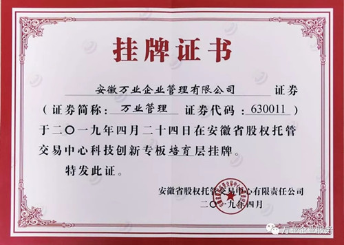 熱烈祝賀安徽萬業(yè)企業(yè)管理有限公司入駐安徽省股交中心首批科創(chuàng)板企業(yè)!!!