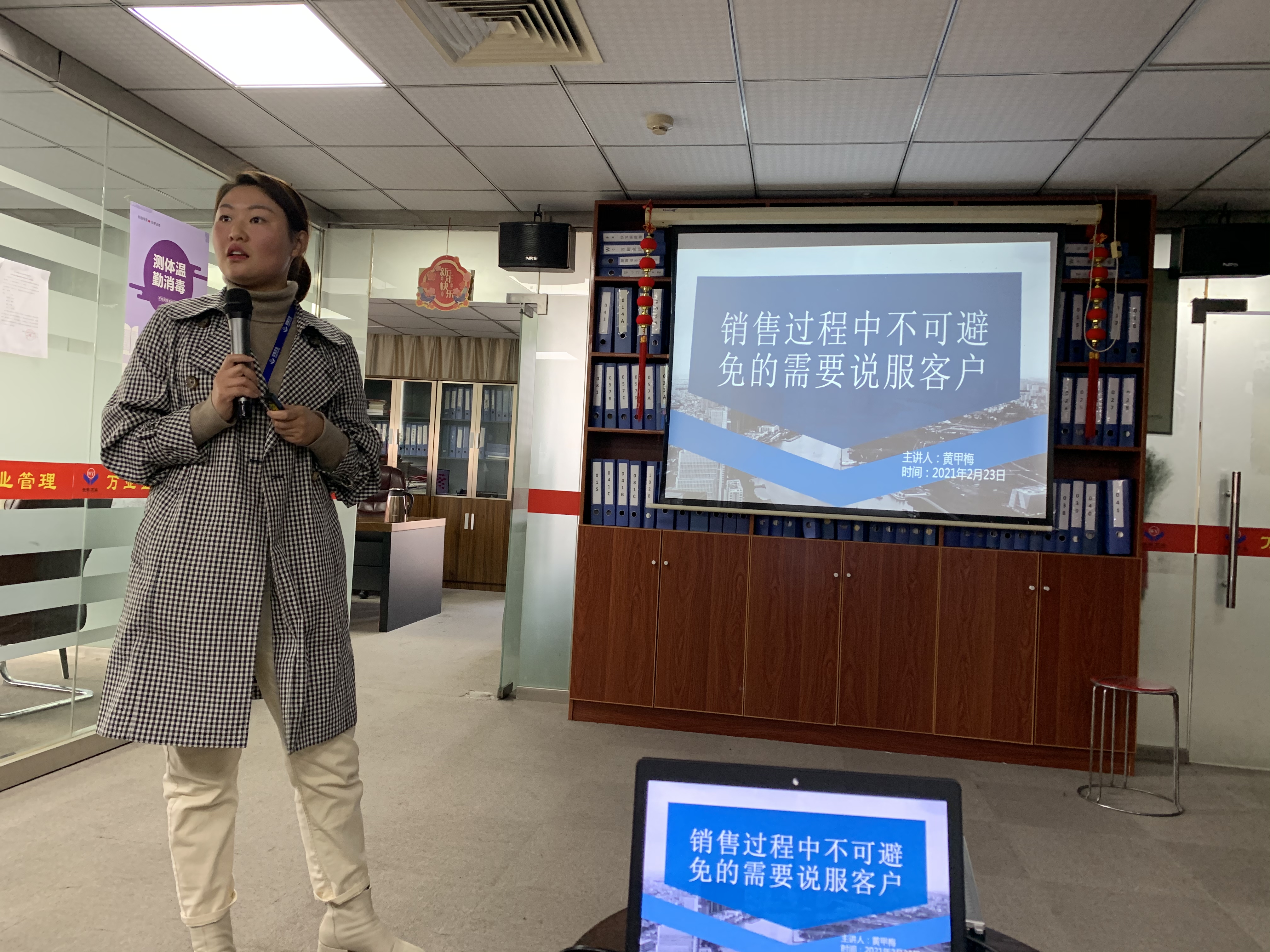 開年培訓最后一堂課,由黃總為大家主講“銷售過程中不可避免的需要說服客戶”,黃總講到,企業的快速發展除業績外,更主要的是企業的服務。我們服務態度好壞,直接決定銷售的成交率。更要學會聆聽客戶的需求,與客戶想法一致,一拍即合!伴隨著黃總的演講,結束了為期三天的開年培訓。他們將帶著這三天滿滿的收獲入睡,積攢著力量自信地迎接新的一天!