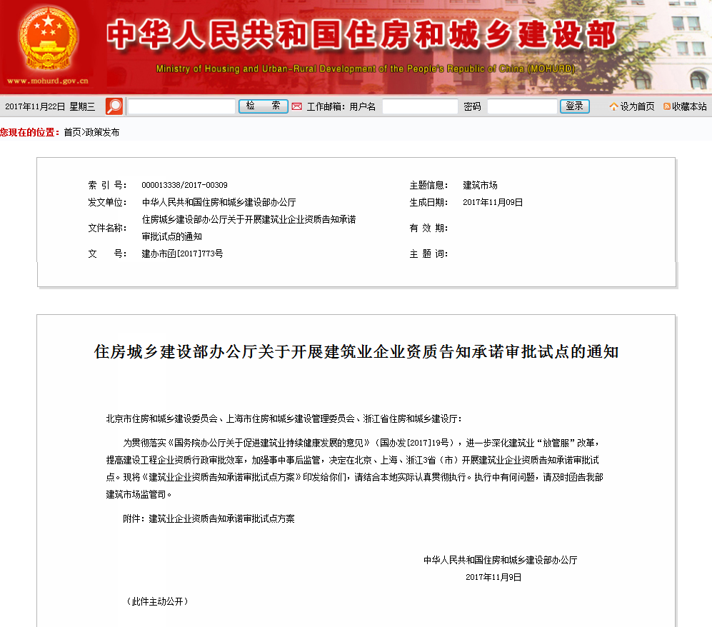 (一)試點地區(qū)于2017年11月底前編制完成本省(市)《建設(shè)工程企業(yè)資質(zhì)告知承諾審批試點方案》及操作規(guī)程。