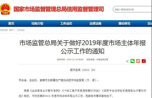 市場監(jiān)管總局關(guān)于做好2019年度市場主體年報公示工作的通知